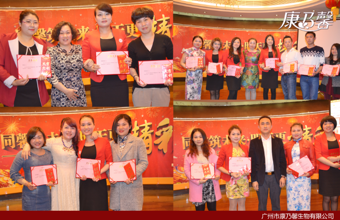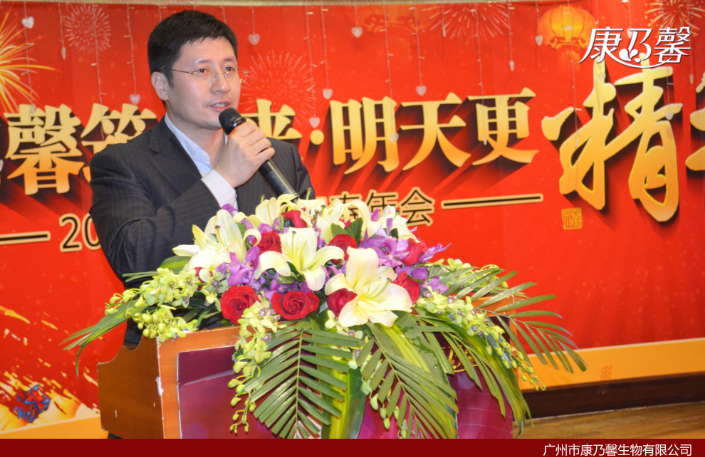 广东广润集团董事长——李捍雄先生首先上台致辞,他提出康乃馨已经稳步经营6年,将长期保证产品品质,“长线”经营,以高瞻远瞩的战略决策,致力打造健康行业领导品牌。并引用马云的“未来的首富会出现在健康行业”,勉励大家与康乃馨公司一起深耕健康领域,推动行业快速发展,成就美好明天;广州市康乃馨生物有限公司营销总监——廖焕丽对全体员工一年来的辛勤工作给予充分肯定,并感谢今天到来领导及嘉宾们,感谢他们陪康乃馨全体家人过节。致辞在一片片热烈的掌声中结束!