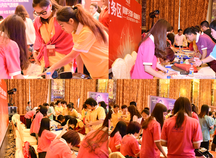 盛会在一段磅礡大气的水墨丹青融合康乃馨产品及模式的人屏互动舞中拉开序幕。由康乃馨营销总监——廖焕丽女士发起传递爱,康乃馨为您健康上保险的带手环仪式,将会议推向了高潮。康乃馨美导老师团队以一袭旗袍亮相,诠释东方女性优雅美,聚焦所有人的目光。“请相信我,我一定会做好”的宣誓,深深的感动了在场的所有合作伙伴,大家含泪上台安慰、拥抱、鼓励、簇拥这些可爱的美业天使们。