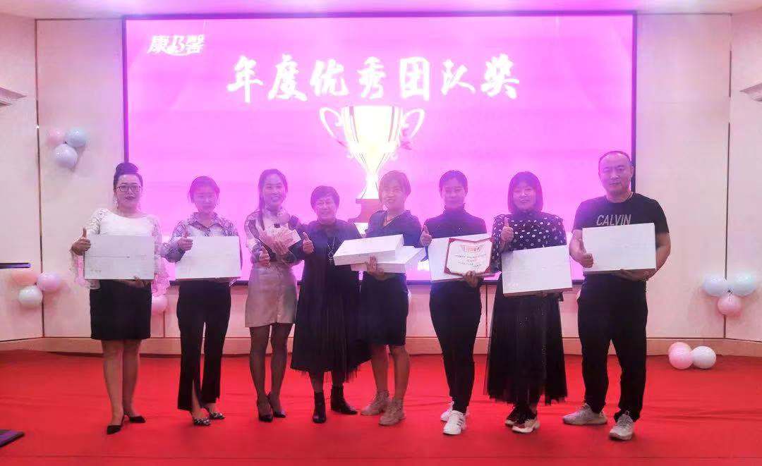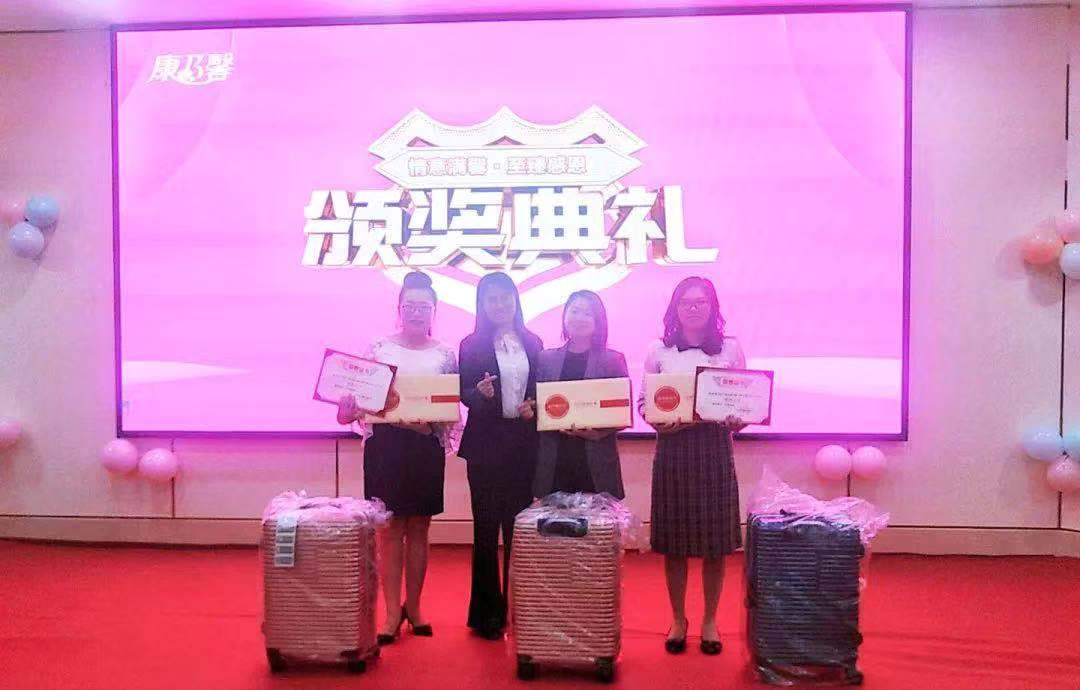 康乃馨廖总、郭总、洪经理分别为获奖嘉宾颁发年度优秀团队奖、年度卓越之星、年度销售之星三大奖项。获奖的小伙伴们心里都乐开了花,奖励是对她们付出的最好认可。