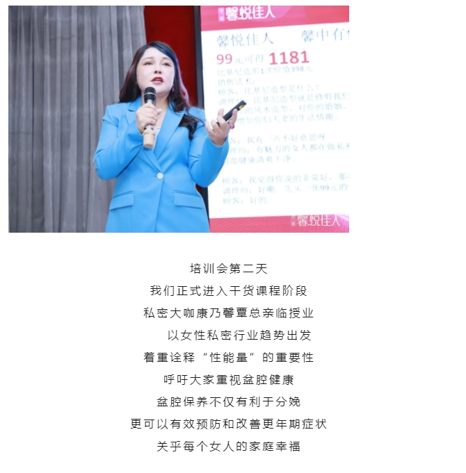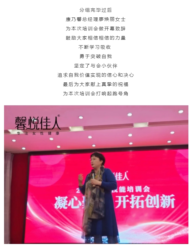 凝心聚力 开拓创新|2024康乃馨馨悦佳人精英技能培训会圆满结束 发布时间:2024-02-29 2024年2月26日——28日【凝心聚力●开拓创新】2024康乃馨馨悦佳人精英技能培训会隆重开课!我们笃定信心,双向奔赴全方位诊断寻找业绩增长点势必引爆2024产后恢复馨热潮 上一篇:聚势增长 共享未来丨2023康乃馨代理商年终答谢会星耀清远,赋能未来! 下一篇:砥砺奋进 勇毅前行|2024康乃馨馨悦佳人财富战略大会圆满结束 热文推荐 1、产后气血亏虚会有哪些表现?气血... 2、三伏已至,一同探索康乃馨「草帽... 3、精进赋能 聚力共赢|2024康... 4、为爱发光丨呵护女性生殖健康 ,... 5、砥砺奋进 勇毅前行|2024康... 最新专题 1、康乃馨团队赴井冈山学习,让健康... 2、康乃馨幸龄“壹肆玖工程”正式启... 3、领势前行,粤见馨篇 ▏康乃馨2... 4、康乃馨粉蓝丝带 ▏关于爱与健康... 5、馨悦佳人 粉蓝丝带 ▏私密健康... 相关文章: