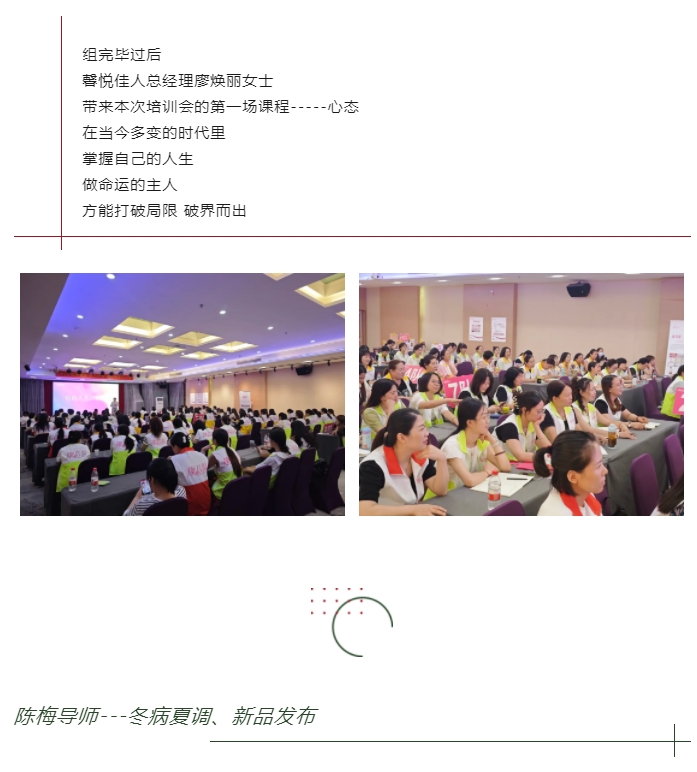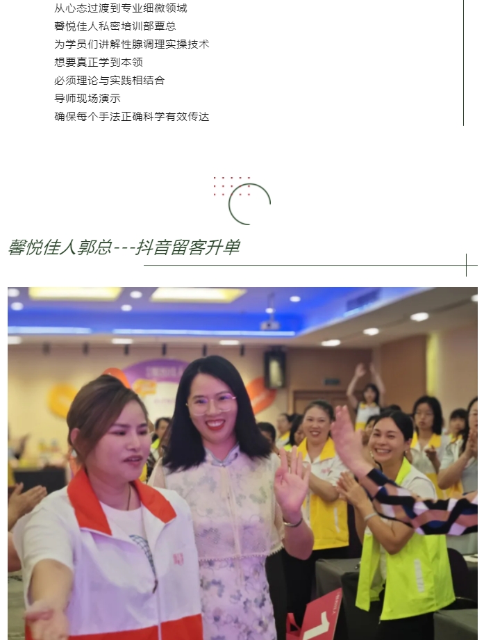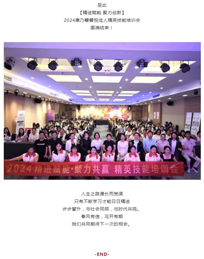 精进赋能 聚力共赢|2024康乃馨馨悦佳人精英技能培训会圆满结束 发布时间:2024-06-14 2024年6月12日——14日【精进赋能 聚力创新】2024康乃馨馨悦佳人精英技能培训会隆重开课! 上一篇:砥砺奋进 勇毅前行|2024康乃馨馨悦佳人财富战略大会圆满结束 下一篇:【健康科普】阴道不“紧”不和谐 热文推荐 1、产后气血亏虚会有哪些表现?气血... 2、三伏已至,一同探索康乃馨「草帽... 3、精进赋能 聚力共赢|2024康... 4、为爱发光丨呵护女性生殖健康 ,... 5、砥砺奋进 勇毅前行|2024康... 最新专题 1、康乃馨团队赴井冈山学习,让健康... 2、康乃馨幸龄“壹肆玖工程”正式启... 3、领势前行,粤见馨篇 ▏康乃馨2... 4、康乃馨粉蓝丝带 ▏关于爱与健康... 5、馨悦佳人 粉蓝丝带 ▏私密健康... 相关文章: