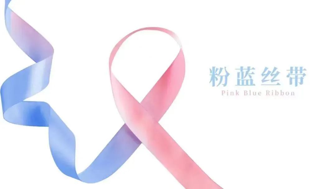 粉蓝丝带是全球女性关注宫颈癌、乳腺癌,捍卫生殖健康的通用爱心标志。