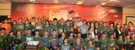 两天的军事化训练囊括了惊险的电网、高难度的流沙河、危险的胜利之路和高耸的毕业墙等种种超强度的拓展训练项目,对所有康乃馨成员及合作伙伴的个人意志品质和团队协作精神都进行了一次烈火般的淬炼。三天的专业知识培训,从辐射危害与防治、盆腔损伤与修复、产品透析与销售、成功模式复制、面诊以及仪器等各个方面对与会人员进行了专业知识的全方位提升。作为回报合作伙伴对康乃馨的全力支持,会议期间康乃馨组织各省份的代理商团队进行了一系列游戏性质的团队竞赛,设置了丰厚的奖品。最终山东菲亚、浙江圣兰和江苏奥斯凭借优秀的团队风貌、扎实的专业知识以及团队才艺分别荣获冠亚季军,成为康乃馨和其它团队学习的对象。