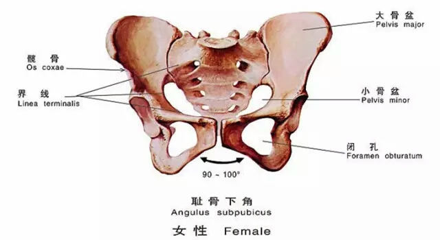 相对于男性的骨盆,女性的骨盆会更宽、更圆一点。所以,你会看到女性的屁股通常情况下会比男性大,因为本身女性的坐骨就会更宽。