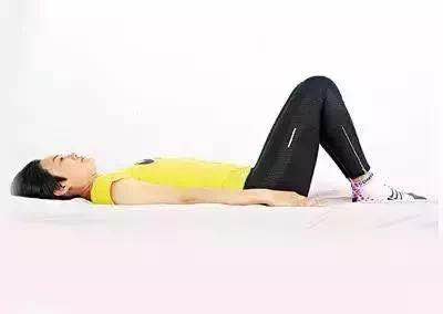Step1:平躺在床上,双手自然垂放两旁,膝盖弯曲、脚跟自然摆放。